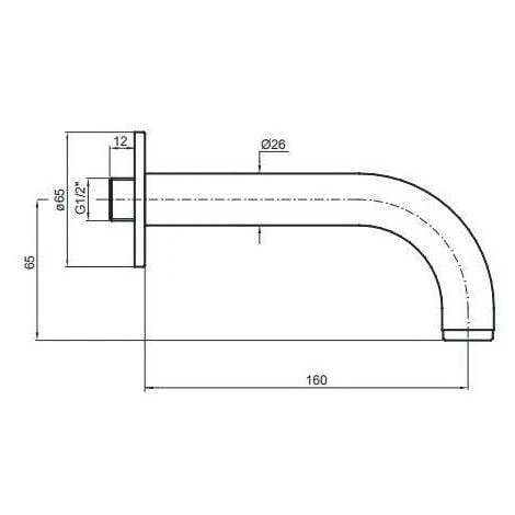 Bocca di erogazione fissa, curva e in tubo di ottone