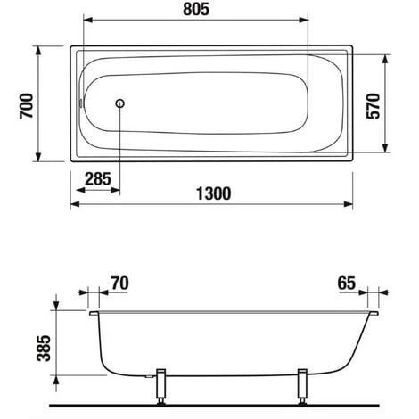 Caratteristiche della vasca rettangolare 130×70 cm in acciaio smaltato, bianco, Jika Riga (H2340300000001):