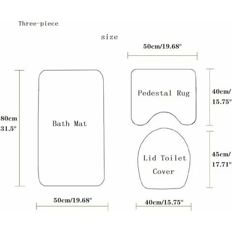 - Il set include: 1 tappetino da bagno (80 x 50 cm), 1 tappetino da bagno sagomato (50 x 40 cm) e 1 copriwater (45 x 50 cm).