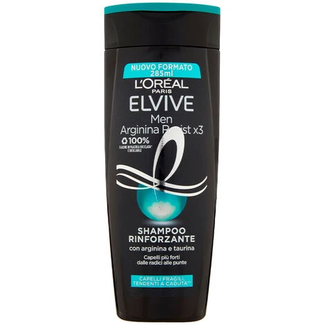 Lo Shampoo Arginina Men deposita l_arginina rinforzando il capello dalle radici alle punte. La fibra è ristrutturata. I capelli riacquistano forza e resistenza. L_Arginina è un amminoacido essenziale fondamentale per la costituzione della fibra capillare. Riconosciuta per favorire la micro-circolazione del cuoio capelluto, aiuta a ottimizzare gli scambi nutrizionali a livello del bulbo. Arricchita in Arginina + Proteina_ la formula Elvive offre una tripla azione: 1) Ristruttura la fibra 2) Con Arginina per nutrire il bulbo 3) I capelli sono più forti__ _Derivato di proteina. __Test strumentale shampoo+balsamo+trattamento vs shampoo classico Le liste degli ingredienti dei prodotti del nostro brand vengono regolarmente aggiornate. Ti invitiamo quindi a leggere la lista che trovi sulla confezione del prodotto per assicurarti che gli ingredienti siano adatti al tuo utilizzo personale.
