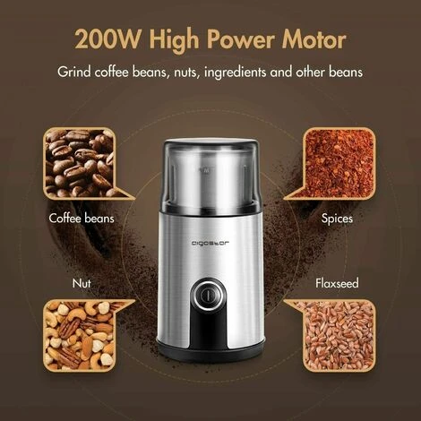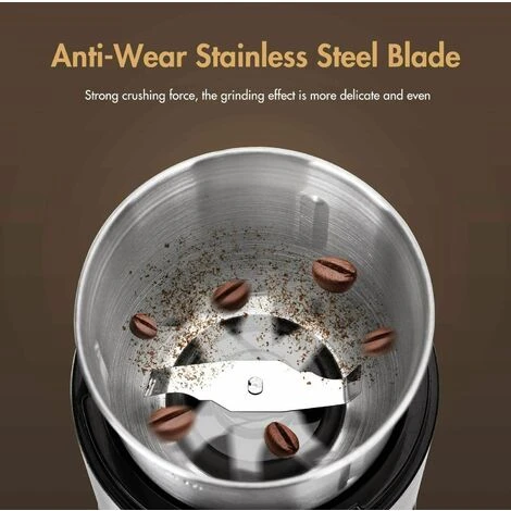 Potente motore da 200 Watt e lame in acciaio inossidabile, per macinare alla perfezione i chicchi di caff alla perfezione in soli 10-20 secondi