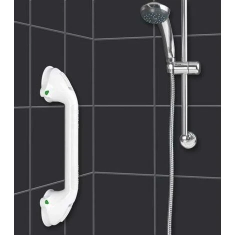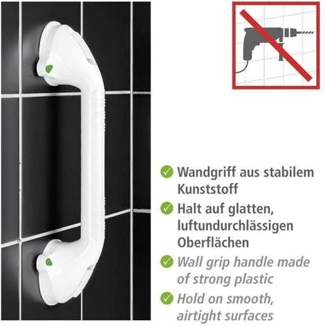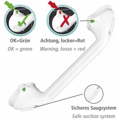 Sostegno sicuro nella stanza da bagno: la maniglia da muro Secura rappresenta un sostegno aggiuntivo vicino al lavabo o al WC. La maniglia da muro è realizzata in robusta plastica di alta qualità e può essere fissata e rimossa semplicemente e senza complicazioni premendo il disco a ventosa e azionando la leva. Ha un utilizzo ergonomico in quanto la maniglia può essere ruotata di 180°. La speciale indicazione per le ventose indica se la maniglia è stata fissata correttamente oppure se la sua posizione deve essere cambiata. In questo modo si garantisce un alto standard di sicurezza.L: 42 cm x A: 11,5 cm x P: 8,5 cm