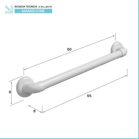 Maniglione disabili – L 60 cm bianco portata max 120 kg per bagno disabili e anziani