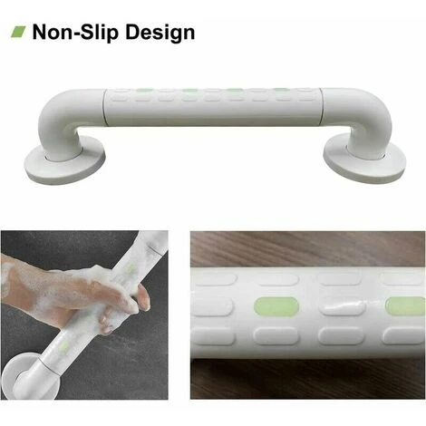 Sicurezza e antiscivolo Sei sempre preoccupato per gli anziani e i bambini che scivolano in bagno I nostri corrimano sono realizzati in camera d’aria in acciaio inossidabile + materiale in nylon bianco, la superficie è antiscivolo, molto durevole, solido e antibatterico allo stesso tempo.
