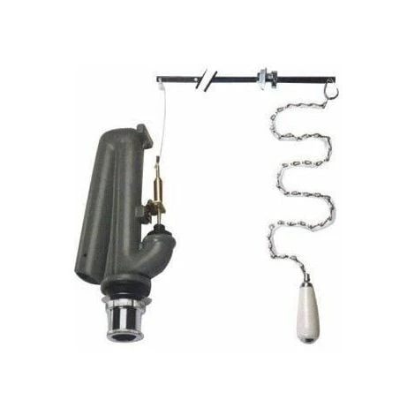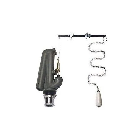 Meccanismo di scarico per cassetta alta in ghisa con pull a catenella e finiture in ceramica/cromo.