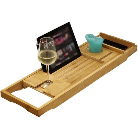 Con questa pratica mensola da vasca da bagno in bambù puoi goderti ancora di più un meritato momento di riposo. La mensola per vasca da bagno, è allungabile cosi che tu possa avere sempre la possibilità di poterla adattare correttamente ai bordi della vasca. Crea il tuo momento spa e goditi (da solo o insieme) un bagno caldo a lume di candela, musica rilassante, un buon libro o tablet e un delizioso bicchiere di vino. Con la nostra mensola in Bambu per vasca da bagno hai tutto quello di cui hai bisogno a portata di mano e cosi non dovrai mai più interrompere il tuo caldo momento di relax. Il bambù esotico conferisce al ponte del bagno un aspetto esclusivo e rustico che ti fa sentire come se fossi nel tuo centro benessere.