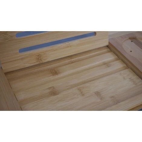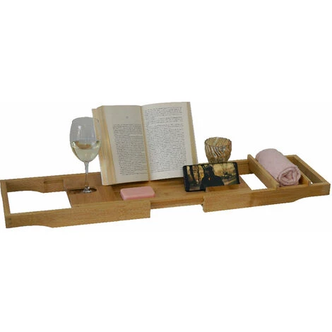 Questa mensola per vasca da bagno incrementerà il livello di relax durante un bagno rilassante. Grazie a questa mensola bagno infatti potrai passare ancora più tempo nella vasca, legendo epr esempio un libro, guardando un film, oppure godendoti un bicchiere di vino in tutta comodità. Questa mensola in bambu infati é dotata di diversi scomparti appositi per portare il tuo telefono o tablet, oppure una candela profumata o un bicchiere da vino.