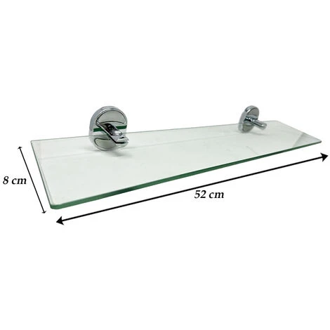 Mensola da bagno realizzata in vetro lucido ideale per ogni arredamento. Dotata di reggimensola color argento già pronte per essere fissate al muro con il kit di montaggio incluso nella confezione.