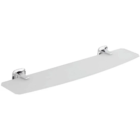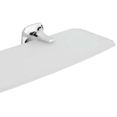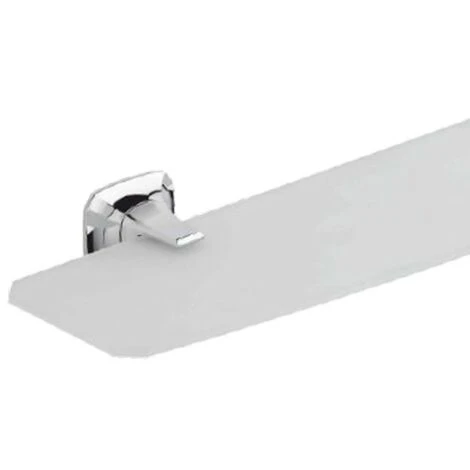 Mensola serie Aida, in vetro sabbiato e finitura cromata. Misura: di cm 56 x h 4 x 12,5. In ottone, vetro e leghe metalliche. Fissaggio a parete con viti in dotazione.