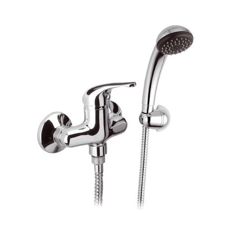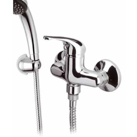 Miscelatore per doccia con interasse di 10 cm realizzato in ottone cromato lucido, dotato di doccino con supporto a muro e flessibile lungo 150 cm.; Le rosette coprimuro hanno un diametro di 70 mm. La serie 100 è plasmata con linee semplici e tondeggianti che la rendono adatta a qualsiasi stile ed arredo. Le parole d’ordine di Remer Rubinetterie sono qualità, affidabilità e stile.Tipologia : Esterno