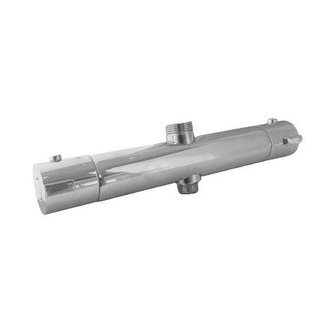 Miscelatore termostatico per colonna doccia Possiede un attacco da 1/2 per flessibile doccia e un attacco superiore da 3/4 da collegare alla colonna doccia Realizzato tutto in ottone cromato, viene fornito completo di eccentrici.