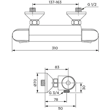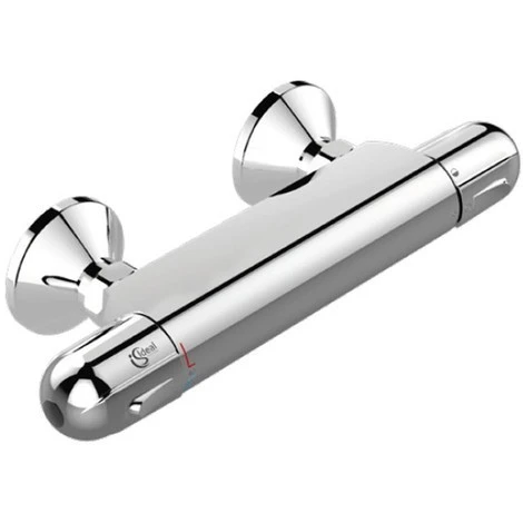 Miscelatore termostatico per esterno doccia sprovvisto di kit doccino ma completo di raccordi ad S regolabili e rosette coprimuro. È dotato del tasto Eko con comando per la riduzione della portata dell’acqua del 50 per cento, di sistema Cool Body a protezione da eventuali scottature e di tasto di sicurezza della temperatura a 40 gradi. Il materiale di realizzazione è l’ottone cromato lucido. Il rubinetto profondo 110 mm e largo 310 mm ha gli attacchi a muro con interasse variabile da 137 a 163 mm. La collezione Idrotherm si distingue per i contorni morbidi e le forme arrotondate, adattabili a qualsiasi tipologia di arredamento. I prodotti Ideal Standard rispondono ai canoni di bellezza, funzionalità e stile richiesti dal mercato odierno.Categoria : Rubinetti per doccia