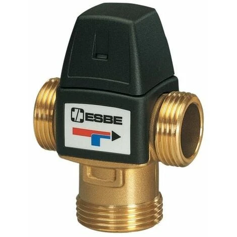 VALVOLA MISCELATRICE ESBE VTA 322ESBE COD. 31101000Attacco: M-M-M I miscelatori termostatici ESBE serie VTA 320 sono maggiormente indicati per le applicazioni generiche quali regolazione dell’acqua calda sanitaria con o senza HWC (circolazione acqua calda) e per circuiti di riscaldamento a pavimento. Funzionamento:La serie VTA 320 è ideale per gli impanti di acqua calda sanitaria che richiedono una funzione antiscottatura in presenza di altri dispositivi di regolazione della temperatura per i rubinetti. Le valvole di questa serie sono indicate anche per gli impanti di acqua calda sanitaria con HWC (circolazione acqua calda).Un’altra applicazione della serie VTA 320 è rappresentata dal mantenimento di una temperatura costante, ad es. in piccoli impanti di riscaldamento a pavimento.La valvola è regolabile da 35°C a 60°C Dati tecnici:Classe di pressione: PN 10Pressione differenziale: max 3 bar (0.3MPa)Temperatura del fluido: max 95°CCollegamento: Filetto femmina, ISO 7/1 Filetto maschio, ISO 228/1Collegamento: Rp 1”Attacco: M-M-MKvs: 1.6