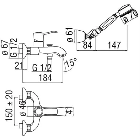 Questo miscelatore vasca esterno ha linee tondeggianti e sinuose dal design retrò ed elegante ottimo per chi vuole rinnovare il proprio arredamento bagno con un prodotto innovativo e all’avanguardia. E’ completo di deviatore automatico, supporto doccia orientabile per facilitarne l’utilizzo, flessibile di 150 cm e doccetta monogetto dalla forma morbida ed aggraziata