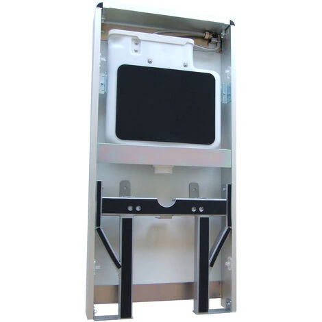 Il telaio è in alluminio di alta qualitá e la placca frontale è costituita da vetro temprato (ESG) in nero o bianco da 8mm di spessore. Il serbatoio integrato, con pulsante di risciacquo parziale o totale e volume d´acqua regolabile è munito di tecnologia anti-condensa.