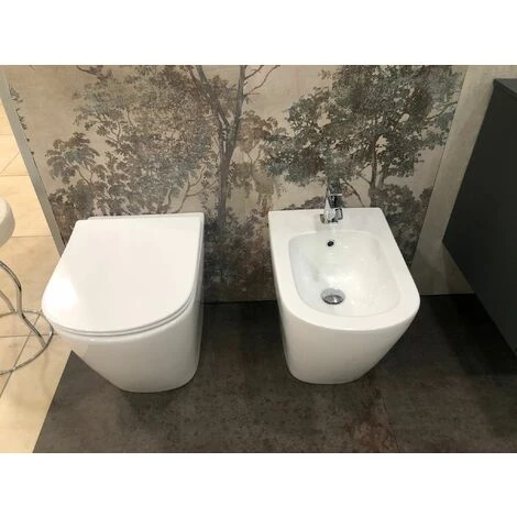 Nuovissima Coppia di Sanitari a Terra in versione senza brida con copri vaso soft close.