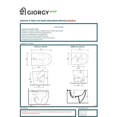 Il prezzo, comprende: vaso, bidet, copri-vaso, curva tecnica s/terra o s/parete, fissaggi a terra.