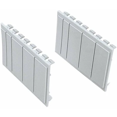 2 mostrine copriforo, per contenitori da parete o incasso, da 0,5 a 4 moduli DIN. Corpo in materiale termoplastico antiurto ed autoestinguente. Colore: grigio. Un modulo DIN corrisponde a 18 mm.