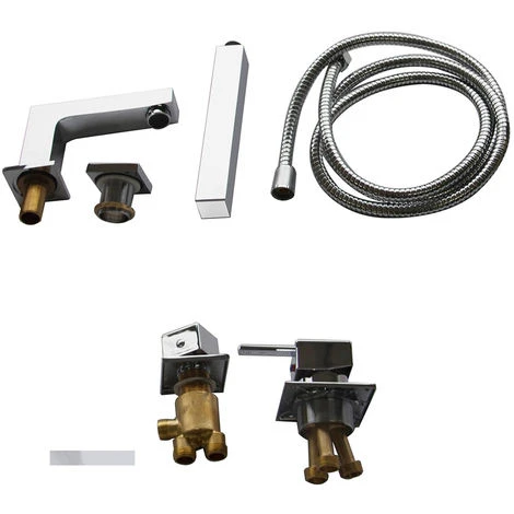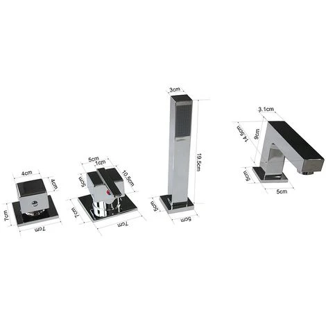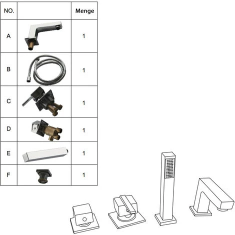- 1 x rubinetto a 4 fori con doccetta, bocca di erogazione e miscelatore