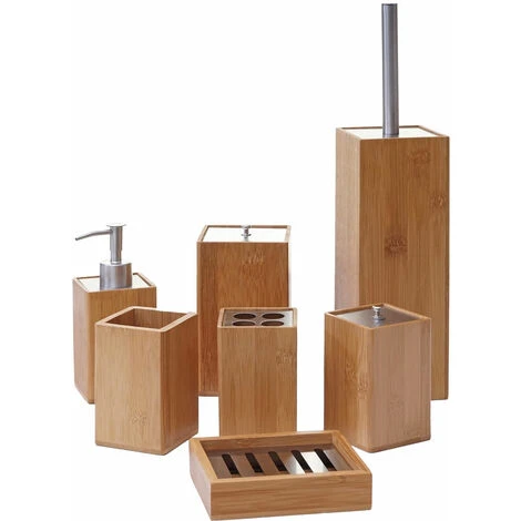 Il set contiene 7 accessori da bagno, realizzati in legno bambu e metallo.