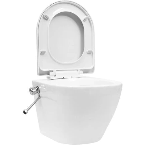 Questo WC sospeso, con un design unico e senza tempo, può facilmente migliorare ogni bagno. È progettato per risparmiare spazio e offrirvi un bagno più pulito. Questo WC con funzione di lavaggio senza bordo ha una superficie in ceramica particolarmente resistente e facile da pulire che semplifica la pulizia. Garantisce inoltre anni di utilizzo. Il calcare e i contaminanti non si attaccano facilmente alla superficie repellente allo sporco. Il meccanismo di chiusura ammortizzata evita la caduta del coperchio del water. Inoltre, la toilette ha un ugello per bidet per pulire i glutei e le zone intime delle donne. L’hardware di montaggio è completamente nascosto, dando un aspetto elegante e unico.