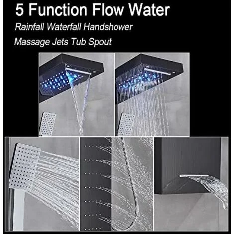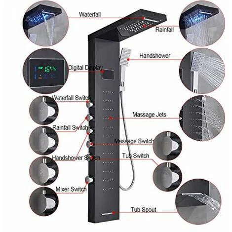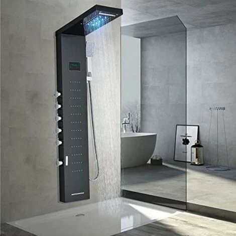 Onyzpily Pannello Doccia In Acciaio Inox Nero Sistema Doccia Doccia Colonna Doccia Doccia Soffione Soffione Doccia Set Doccia Ugelli Massaggianti
