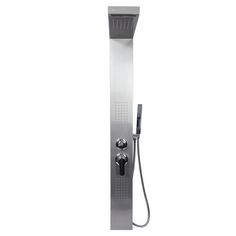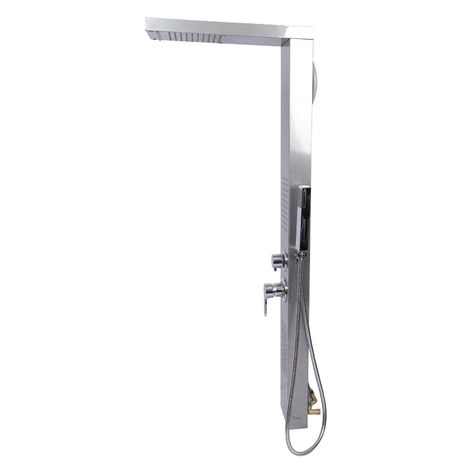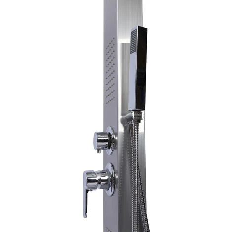 La doccia è realizzata in acciaio inox con una raffinata superficie spazzolata; la doccetta e i regolatori sono cromati. Gli ugelli sono realizzati in silicone per ostacolare i depositi di calcare. I 50 ugelli per i getti d’acqua massaggianti e i 50 ugelli del soffione vi permettono di rivivere l’atmosfera delle spa tra le mura domestiche.