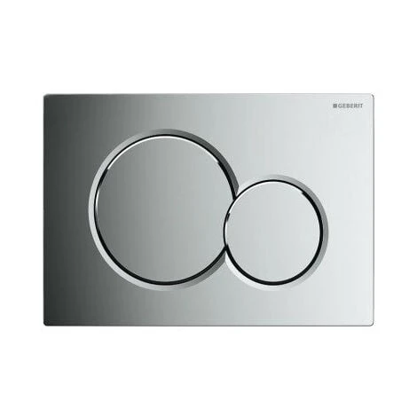 - La placca di attivazione in plastica Geberit Sigma01 cromata, con le sue due ellissi intrecciate, conferisce un aspetto giovane e frizzante a qualsiasi bagno.