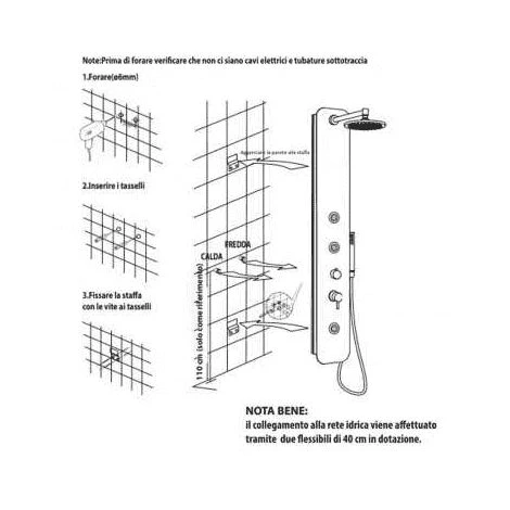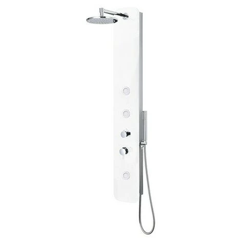 Realizzata in vetro temperato, 3 funzioni selezionabili: doccetta a mano, soffione, getto orizzontale. Completo di laccio doccia in acciaio inox. Dimensioni: cm L. 20 x H 140 (Ferramenta Beltrami)