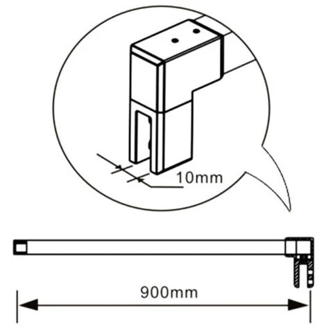 - 5. Barra stabilizzatrice in alluminio, da 90 cm, con un’elegante finitura nero opaco regolabile tramite taglio con apposito strumento alla misura che si desidera, installabile perpendicolarmente alla parete doccia;