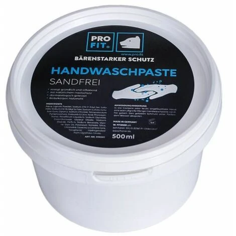 Prot® Pasta di lavaggio a mano sabbia -pree pulisce accuratamente e delicatamente Con protezione naturale della pelle testata dermatologicamente rapide: farina di legno arrotondata Nella mano asciutta o leggermente inumidita, dà una quantità di pasta di lavaggio delle mani di dimensione in noce. Risciacquare la protezione disciolta sotto acqua corrente.