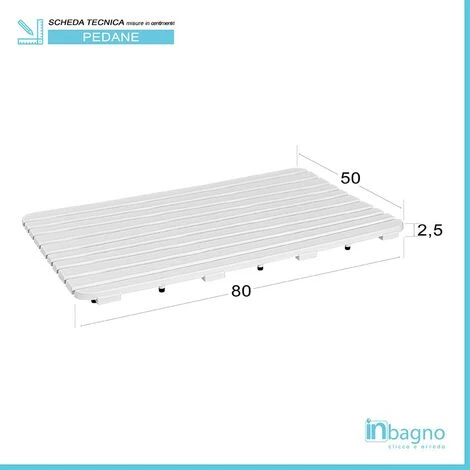 Pedana Doccia antiscivolo 80×50 cm in Plastica bianco con effetto legno