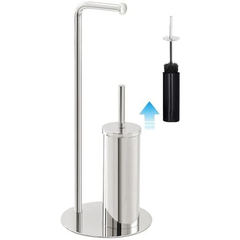 Il portarotolo presente è dotato di un pratico fermo, che consente di riporre in totale sicurezza e tranquillità il proprio rotolo di carta igienica, evitandone cadute accidentali. La piantana portarotolo scopino è inoltre completa di contenitore estraibile per una maggiore pulizia ed igiene nel proprio bagno. Fornita in kit di montaggio, la piantana è facile da installare senza alcun bisogno di forare.