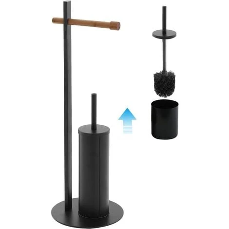 La Piantana Bagno Portarotolo e Portascopino e’ realizzata in acciaio Nero con inserti in legno naturale, che rendono la Piantana oggetto ideale per ogni tipologia di Arredo Bagno.