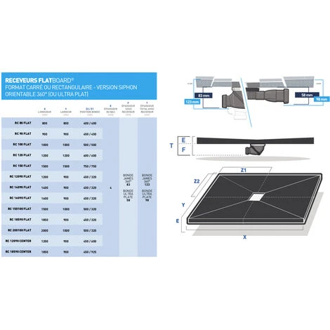 Il piatto doccia piastrellabile compatto U-tile è realizzato da una schiuma espansa rigida estrusa, rinforzato con fibra di vetro e una malta cementizia polimerizzata. Questa lega permette al ricevitore di essere leggero, estremamente robusto meccanicamente e ritagliabile. Il piatto doccia ha 4 pendenze di circa 2% per un’evacuazione rapida e fluida dell’acqua. I piatti doccia sono tutti progettati con un tappetino impermeabile premontato che sporge di 10 cm da ciascun lato del vassoio per garantire una tenuta periferica e per essere installati in modo più rapido e sicuro.