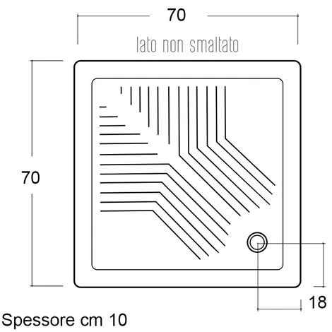 70×70 cm, altezza di 10 cm e installazione da appoggio.