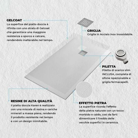 - È INCLUSA la griglia di copertura in acciaio inox e piletta di scarico slim