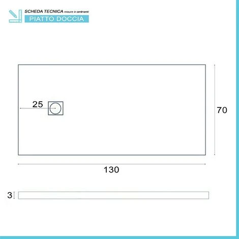 Piatto doccia resina rettangolare 70×130 cm filo pavimento con spessore 3 cm bianco pietra completo di griglia e piletta