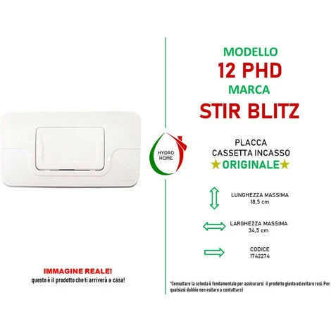 Placca nuovo modello 12 PHD per cassetta incasso STIR BLITZ, colore Bianco, include accessori