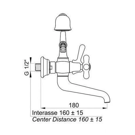 Ponsi Viareggio gruppo vasca con deviatore 305/d con flessibile, doccia e supporto doccia giallo come fpoto