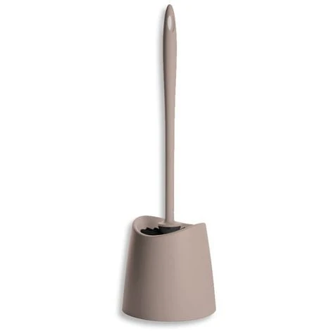 Porta scopino moderno tortora in plastica per wc completo di spazzola con setole nere morbide