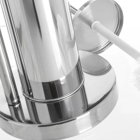 Realizzato interamente in acciaio inox cromato in colore silver con base portascopino irotonda che dona eccellente stabilità al portarotolo.