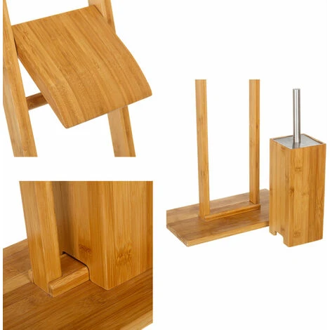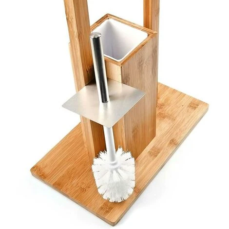 1 x Portarotolo Con Scopino e Porta Scopino In Legno Bambu’ Accessori Bagno WC 82 cm