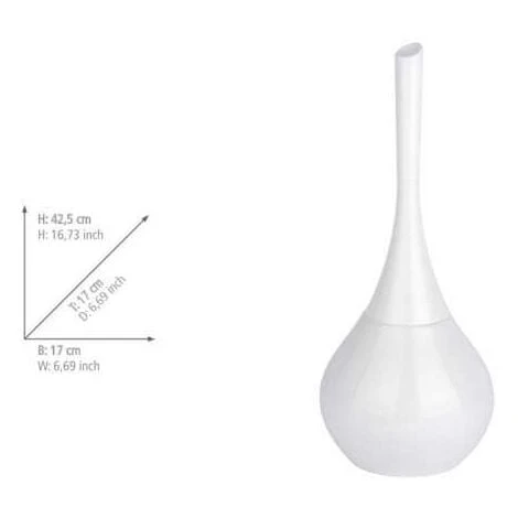 Gli eleganti accessori da bagno della serie Flakon portano funzionalità ed eleganza in ogni bagno. La ceramica di alta qualità in combinazione con la plastica e l’originale design dalla forma di un flacone, rendono il set portascopino WC un elemento di risalto in bagno o nella toilette. Con l’elegante set portascopino bianco è garantita una pulizia a fondo del WC. Lo scopino WC garantisce un utilizzo affidabile grazie alle setole robuste e flessibili. Grazie alla forma chiusa dell’elegante set portascopino non fuoriescono odori e lo scopino resta nascosto alla vista. Lo scopino WC con ciuffo nero sostituibile Ø 6,5 cm è incluso.Ø: 17 cm x A: 42,5 cm