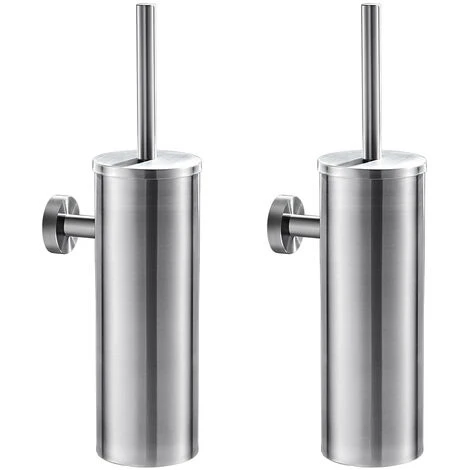 2Pcs Auralum Portascopino WC Bagno a Parete in Acciaio Inox Spazzolato Scopino Per WC e Supporto con coperchio+manico+spazzola di pulizia a 360º, Splashproof, Anti-odore, Set di spazzole per WC a Muro