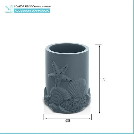 Il portaspazzolino proposto è in resina, materiale ideale per intagli decorativi, che assicura sia durata che un tocco di colore notevole alla stanza; bicchiere funzionale e multiuso, adatto sia per spazzolini sia come porta oggetti.