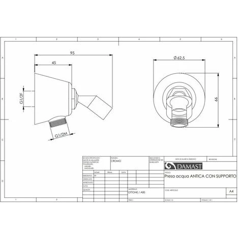Presa acqua con supporto doccia in ottone cromato attacco standard 1/2| Damast 13806