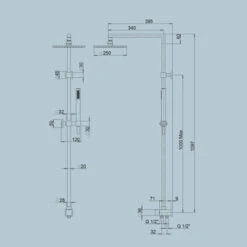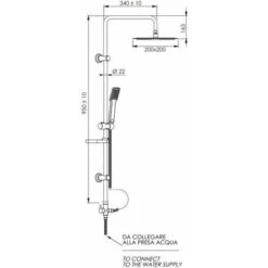 Colonna Doccia Quadrata In Ottone Cromato Con Soffione 20×20 E Deviatore Incorporato Mod. Malta