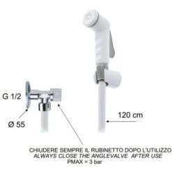 Doccetta Bidet Bianca Con Flessibile, Rubinetto E Supporto Bianco