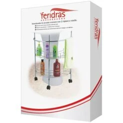Carrello Sottolavabo In Acciaio Cromato Con 2 Ripiani E Rotelle